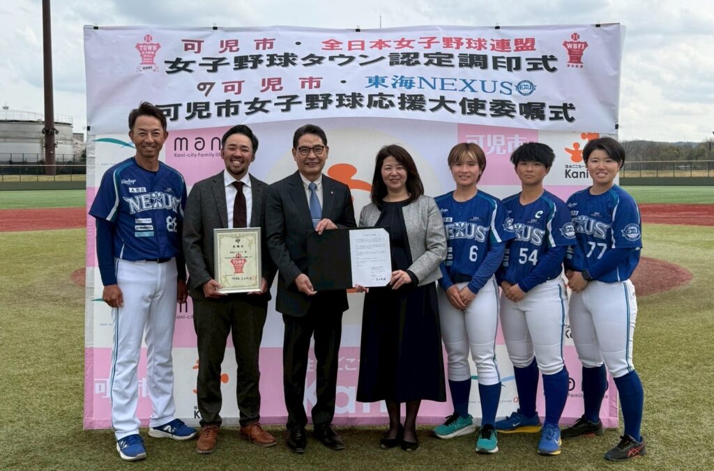 2026年3月30日(月)には、可児市のカヤバスタジアムにて女子野球タウン認定調印式が執り行われ、